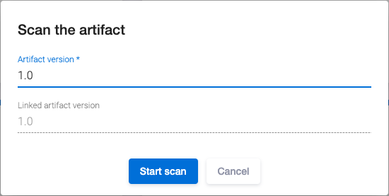 button at the top right and select the Start scan item from the drop-down menu. - In the Scan the artifact window that appears, select the artifact version from the list of available versions in the Artifact version field.