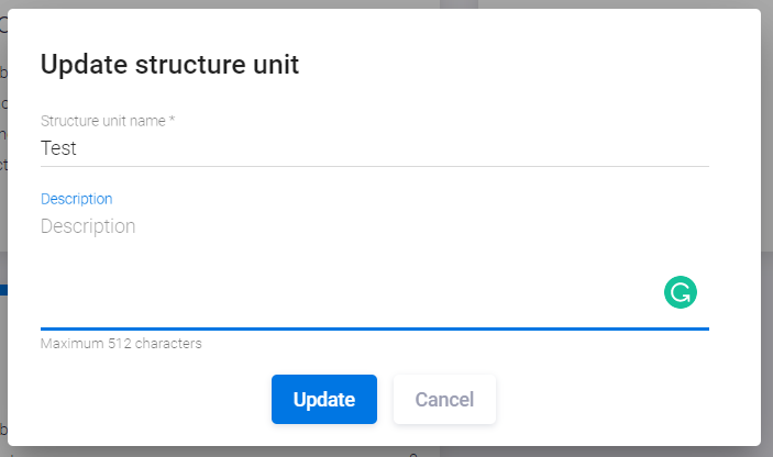 icon in the structure unit card to update its parameters. The Update structure unit window appears.